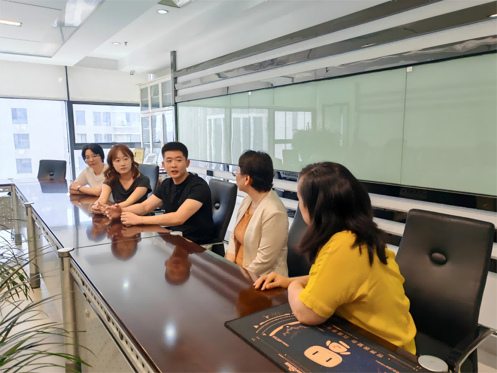 随后沈阳盘古内容中心艾萨总监、周珑经理、两位老师、在企业实习的3名员工进行了亲切的座谈。